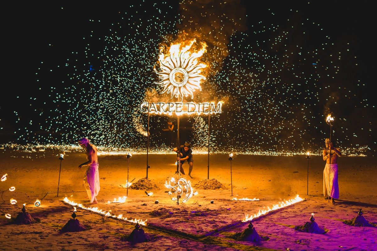 โซนเตียงริมสระของ Carpe Diem มอบบริการครบครัน ทั้งพนักงานดูแล ผ้าเย็น และเมนูเครื่องดื่มคัดสรพิเศษ อีกทั้งยังมีดีเจประจำคลับที่ช่วยสร้างบรรยากาศผ่อนคลายในช่วงกลางวัน และต่อเนื่องด้วยจังหวะเร้าใจในยามเย็นจนถึงค่ำ ขณะที่ชายหาดเต็มไปด้วยการแสดงสุดตระการตา ปิดท้ายด้วยโชว์ควงไฟสุดอลังการริมทะเล