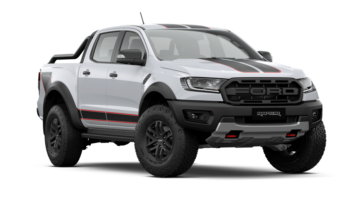 - ภายนอกโดดเด่นยิ่งขึ้นด้วยสติกเกอร์กราฟฟิกสไตล์ ‘Over the Top’ รอบคัน เพิ่มความดุดันด้วยชุดแต่งสีดำพร้อมโรลบาร์แบบยาว ชุดหูลากหน้ารถสีแดงสไตล์สปอร์ต และโลโก้ฟอร์ดสีดำบนฝาท้ายกระบะ