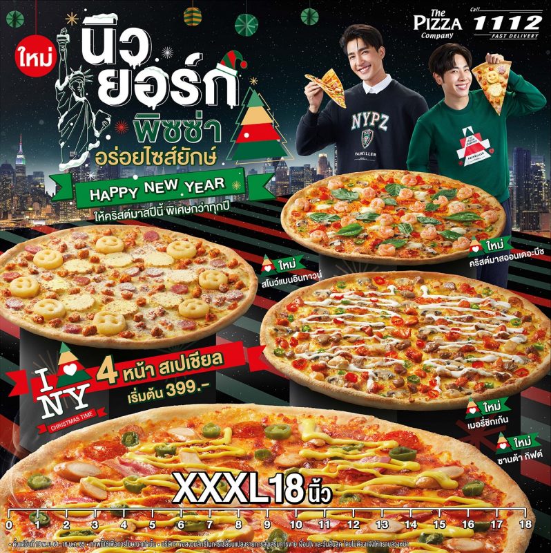 นอกจากนี้ยังได้จัดแคมเปญพิเศษ “New York in Christmas Time” เพื่อสร้างบรรยากาศการเฉลิมฉลองเทศกาลคริสต์มาสในสไตล์มหานครนิวยอร์ก ด้วยการเปิดตัว “นิวยอร์กพิซซ่า XXXL 18 นิ้ว” 4 หน้าใหม่ ซึ่งได้เพิ่มเติมและคัดสรรวัตถุดิบนำเข้าพิเศษ อาทิ ครีมชีส แฮชบราวน์ เบคอน ไส้กรอกเวียนนา ฯลฯ มาเป็นวัตถุดิบหลัก ประกอบด้วย 1) สโนว์แมนอินทาวน์ สไมล์ลี่แฮชบราวน์สุดคิ้วท์ อร่อยลงตัวกับครีมชีส ไส้กรอกอิตาเลียน และไส้กรอกหมูรมควัน โรยด้วยสโนว์ชีสดั่งสโนว์แมนท่ามกลางหิมะ 2) ซานต้ากิฟต์ส่งความสุขด้วยซานต้าเบคอน จัดเต็มกับไส้กรอกเวียนนา เปปโปโรนี ราดด้วยซอสมัสตาร์ดเป็นรูปต้นคริสต์มาส 3) คริสต์มาส ออน เดอะบีช คริสต์มาสนี้คิดถึงทะเล อร่อยแซ่บกับกุ้งเด้งตัวโต เหมือนยกทะเลมาไว้ตรงหน้า และ 4) เมอร์รี่ชิกเก้น อร่อยสุขสันต์รวมพลังไก่ ไก่อบบาร์บีคิวและเห็ด ไก่การ์ลิคบัตเตอร์ และไก่ย่าง อร่อยยิ่งขึ้นด้วยซอสซาวครีม วาดเป็นรูปต้นคริสต์มาส