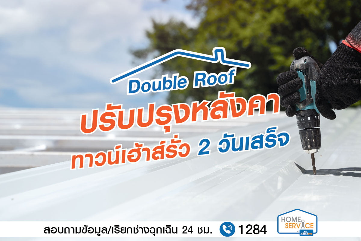 การเปลี่ยนหลังคาไม่ใช่เรื่องยากอีกต่อไป ไม่เสียเวลา ติดตั้งเร็ว ปลอดภัยในการติดตั้ง ไม่ต้องรื้อถอนหลังคาเดิม ช่วยลดความร้อนหลังคา และช่วยประหยัดค่าใช้จ่าย กับบริการปรับปรุงหลังคา Double Roof โดยช่างมืออาชีพ แพ็คเกจปรับปรุงหลังคา Double Roof ด้วยหลังคา Metal sheet เริ่มต้นที่ 1,500 บาท รวมค่าแรง และวัสดุ ไม่มีขั้นต่ำ /ตารางเมตร