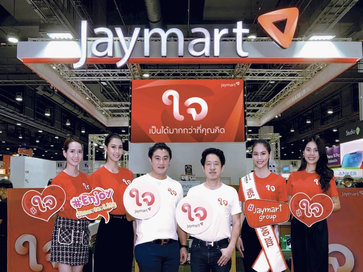นายนราธิป วิรุฬห์ชาตะพันธ์ (ที่ 3 จากขวา) ประธานเจ้าหน้าที่บริหาร บริษัท เจมาร์ท โมบาย จำกัด (Jaymart Mobile) พร้อมด้วยนายดุสิต สุขุมวิทยา (ที่ 3 จากซ้าย) รองประธานเจ้าหน้าที่บริหาร นำไฮไลท์สินค้าสมาร์ทโฟนและเทคโนโลยีร่วมงาน Thailand Mobile Expo 2022 ชูคอนเซ็ปต์ Jaymart ให้ไปทั้ง ‘ใจ’ พร้อมข้อเสนอสุดพิเศษ 6 ต่อ