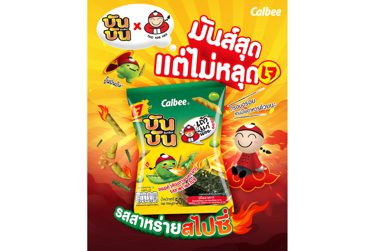 การร่วมมือกันครั้งแรกระหว่างสองบริษัทขนมยอดนิยม นำโดย บริษัท เถ้าแก่น้อย ฟู๊ดแอนด์มาร์เก็ตติ้ง จำกัด (มหาชน) ผู้นำตลาดสาหร่ายแปรรูปอันดับ 1 ของไทย แบรนด์ “เถ้าแก่น้อย“ ร่วมมือกับ บริษัท คาลบี้ธนาวัธน์ จำกัด ผู้ผลิตขนมถั่วลันเตาอบกรอบ ภายใต้แบรนด์ “บันบัน” ประกาศเปิดตัวขนมรสชาติใหม่ “บันบัน รสสาหร่ายสไปซี่” ผสมผสานความเข้มข้นของผงสาหร่ายจาก “เถ้าแก่น้อย” นำมาปรุงแต่งรสชาติเพิ่มความเผ็ดจัดจ้าน เข้ากับความกรอบ และรสสัมผัสที่เป็นเอกลักษณ์ของขนมถั่วลันเตาอบกรอบ “บันบัน” ขนมรูปทรงฝักถั่วที่เป็นเอกลักษณ์ พร้อมเครื่องหมาย “เจ” บนซองขนม เหมาะสำหรับผู้ที่มองหาขนมที่ปราศจากผลิตภัณฑ์จากสัตว์ และต้องการลิ้มรสความอร่อยรูปแบบใหม่ในเทศกาลกินเจ 2568 นี้