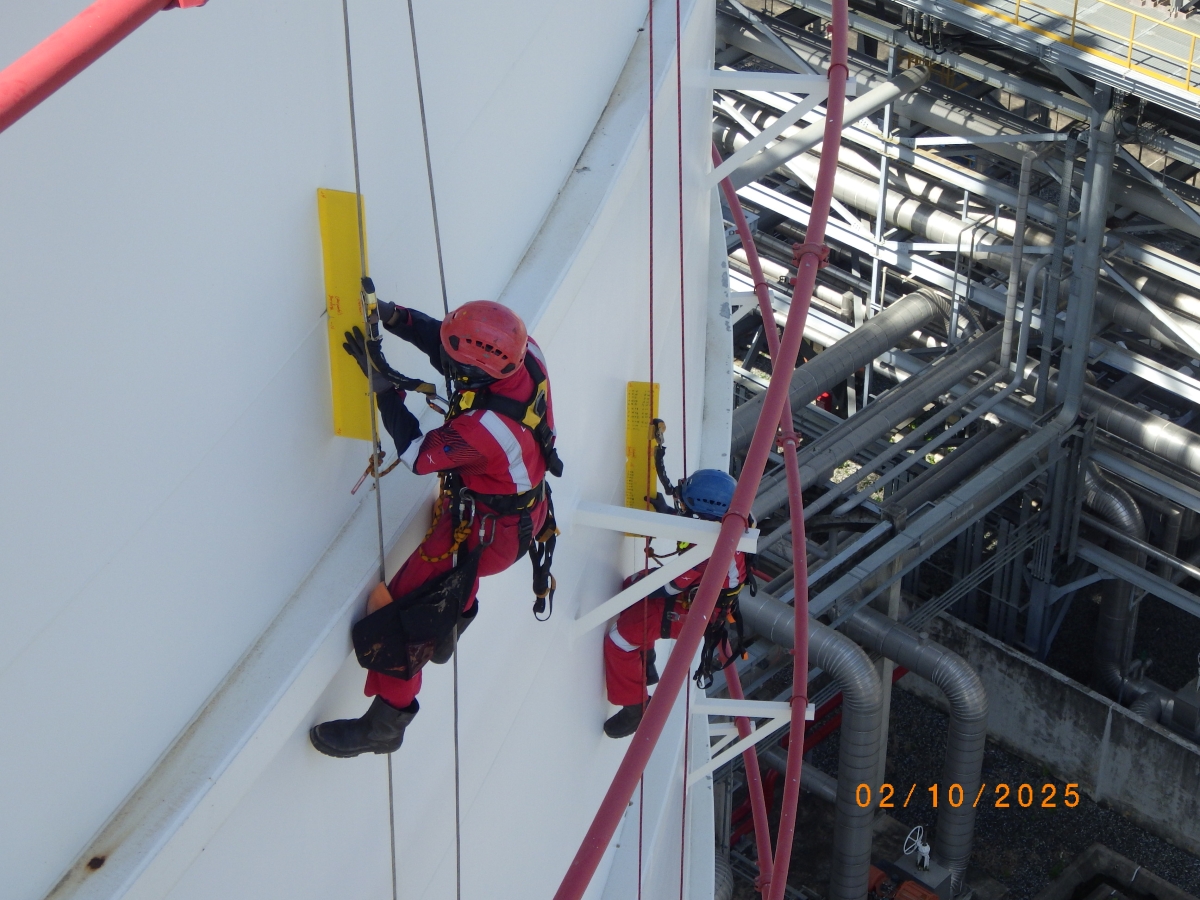 การตรวจสอบถังเก็บก๊าซขนาดใหญ่ตามวาระที่กระทรวงพลังงานกำหนด เป็นขั้นตอนสำคัญในการรับรองความปลอดภัย ความมั่นคง และอายุการใช้งานของถังเก็บก๊าซ โดยต้องดำเนินการตรวจสอบหลายรายการภายใต้มาตรฐาน API 653 ซึ่งครอบคลุมทั้งด้านโครงสร้าง ระบบป้องกัน และอุปกรณ์ความปลอดภัย โดยหนึ่งในความท้าทายสำคัญของการตรวจสอบถังเก็บขนาดใหญ่คือการเข้าถึงพื้นที่สูงและจุดที่เข้าถึงยาก การติดตั้งนั่งร้านแบบเดิมมักใช้เวลานานและมีต้นทุนสูง เทคโนโลยี Rope Access หรือการเข้าถึงพื้นที่ด้วยระบบเชือกนิรภัย จึงเป็นทางเลือกที่เหมาะสมทั้งในด้าน ประสิทธิภาพ ความปลอดภัย และความคุ้มค่า