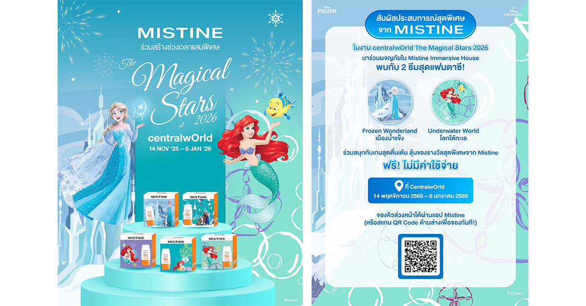 มิสทิน ร่วมกับศูนย์การค้า เซ็นทรัลเวิลด์ ต้อนรับเทศกาลคริสต์มาสและปีใหม่สุดยิ่งใหญ่กับงาน “The Magical Stars 2026 at centralwOrld” งานเฉลิมฉลองแห่งความสุขที่ทุกคนรอคอย จัดเต็มด้วยการตกแต่งไฟสุดตระการตา และโซนกิจกรรมสุดพิเศษมากมาย ระหว่างวันที่ 14 พฤศจิกายน 2568 – 6 มกราคม 2569