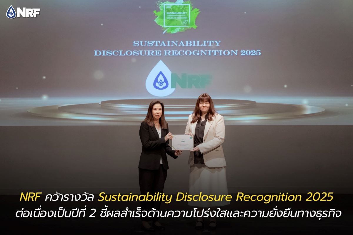 บริษัท เอ็นอาร์ อินสแตนท์ โปรดิวซ์ จำกัด (มหาชน) หรือ NRF ได้รับรางวัลการเปิดเผยข้อมูลความยั่งยืน ประจำปี 2568 (Sustainability Disclosure Recognition 2025) จากสถาบันไทยพัฒน์ ต่อเนื่องเป็นปีที่ 2 รางวัลนี้มอบให้แก่องค์กรที่มีการเปิดเผยข้อมูลด้านความยั่งยืนอย่างถูกต้อง ครบถ้วน และเป็นประโยชน์ต่อสาธารณะ สะท้อนความโปร่งใสและความรับผิดชอบในการดำเนินธุรกิจตามกรอบมาตรฐานสากล โดยมี นางสาวอรพรรณ มาบรรดิษฐ์ ผู้จัดการด้านความยั่งยืน เป็นผู้แทนบริษัทฯ เข้ารับมอบรางวัลจาก นางสาววีรญา ปรียาพันธ์ ผู้อำนวยการประชาคมการเปิดเผยข้อมูลความยั่งยืน สถาบันไทยพัฒน์ ณ ห้องออดิทอเรียม ชั้น 5 หอศิลปกรุงเทพฯ