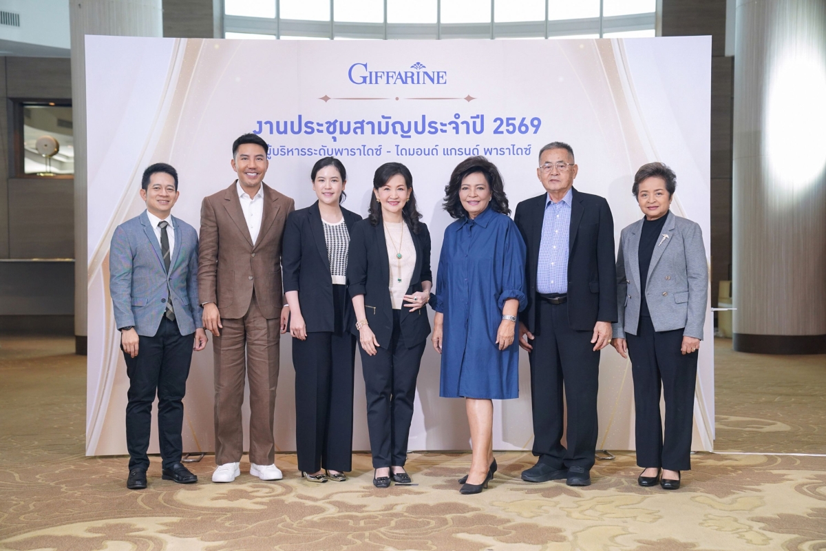 บริษัท กิฟฟารีน สกายไลน์ ยูนิตี้ จำกัด จัดงานประชุมสามัญประจำปี 2569 แถลงนโยบายและกลยุทธ์ทางการตลาด เปิดรับศักราชใหม่ ด้วยนโยบายที่ผสมผสานการตลาดเชิงรุกรอบด้าน เน้นกลยุทธ์การสร้างประสบการณ์ให้ลูกค้าเข้าถึงนวัตกรรมผลิตภัณฑ์ในทุกช่องทาง เปิดตัวเครื่องมือทางการตลาดใหม่ๆ สนับสนุนนักธุรกิจเติบโตอย่างรวดเร็ว นำโดย พญ.นลินี ไพบูลย์ ประธานกรรมการ คุณพงศ์พสุ อุณาพรหม รองกรรมการผู้จัดการ และประธานเจ้าหน้าที่เพื่อการเติบโตองค์กร คุณเอกกมล บุญญาภิสันท์ ผู้อำนวยการสายงานการตลาด และผู้ช่วยผู้บริหารเพื่อการเติบโตองค์กร พญ.สิริอรญ์ สุกาญจนพงษ์ ผู้จัดการฝ่ายนวัตกรรมผลิตภัณฑ์ คุณศุภร ธัญวาส ผู้บริหารระดับไดมอนด์ แกรนด์ พาราไดซ์ และผู้บริหารระดับสูง เข้าร่วมงาน ซึ่งงานในครั้งนี้มีนักธุรกิจกิฟฟารีนจากทั่วประเทศ ร่วมงานประชุมกว่า 1,000 คน ณ โรงแรม มิราเคิล แกรนด์ คอนเวนชั่น เมื่อวันอาทิตย์ที่ 25 มกราคม 2569 ที่ผ่านมา