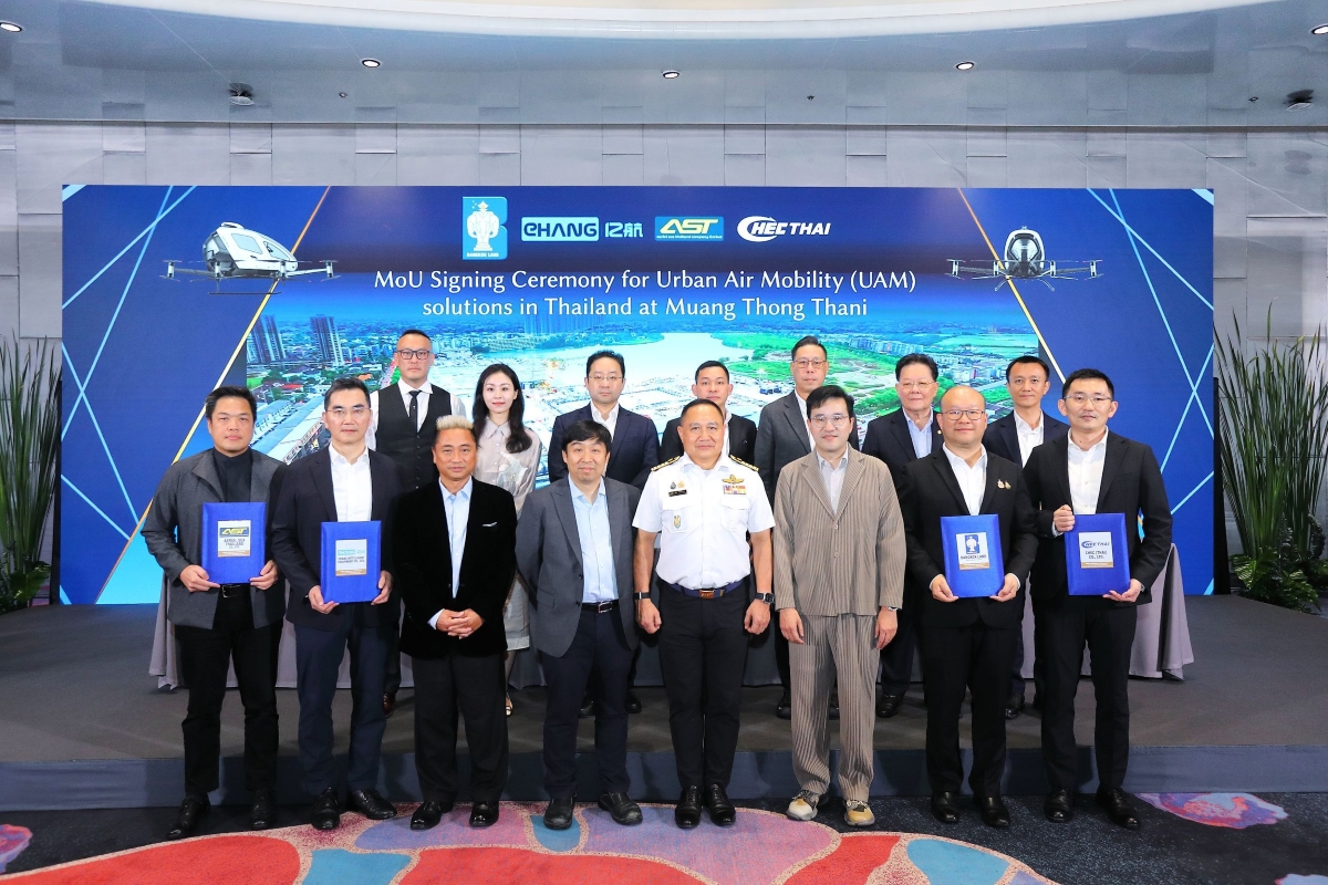 บริษัท บางกอกแลนด์ จำกัด (มหาชน) ร่วมลงนามบันทึกความเข้าใจ (MOU) กับพันธมิตรชั้นนำ ได้แก่ บริษัท EHang Intelligent Equipment Co., Ltd. ผู้นำระดับโลกด้านอากาศยานไฟฟ้าไร้คนขับแบบขึ้นลงทางดิ่ง (eVTOL), บริษัท แอเรียล ซี ไทยแลนด์ จำกัด และบริษัท ซีเอชอีซี (ไทย) จำกัด เพื่อศึกษาและพัฒนาระบบการคมนาคมทางอากาศรูปแบบใหม่ (Urban Air Mobility: UAM) มุ่งยกระดับโครงสร้างพื้นฐานด้านการคมนาคมของประเทศ พร้อมผลักดัน “เมืองทองธานี” ก้าวสู่การเป็นหนึ่งในพื้นที่ที่มีความสะดวกด้านการเดินทางมากที่สุดในประเทศไทย