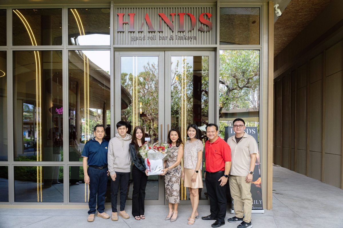 ศุภานวิต เอี่ยมสกุลรัตน์ (ที่ 4 จากซ้าย) ประธานเจ้าหน้าที่บริหาร บริษัท เคอี กรุ๊ป จำกัด มอบดอกไม้แสดงความยินดีกับ ศิริวิภา โพธิกมล (ที่ 3 จากซ้าย) ประธานกรรมการบริหาร HANDS BKK เนื่องในโอกาสเปิดร้าน “Hands roll bar & Izakaya” ร้านอาหารญี่ปุ่นสไตล์โมเดิร์นโดดเด่นด้วยแฮนด์โรลคำต่อคำ ผสานบรรยากาศอิซากายะ สาขา Crystal Sports โดยมี พจพนา ตรีวัฒนชัยกุล, ชลพัฒน์ ตรีวัฒนชัยกุล และชายทัด จุลกลพ ร่วมแสดงความยินดี ณ สนามเทนนิสในร่ม คริสตัล สปอร์ต จี เมื่อเร็ว ๆ นี้