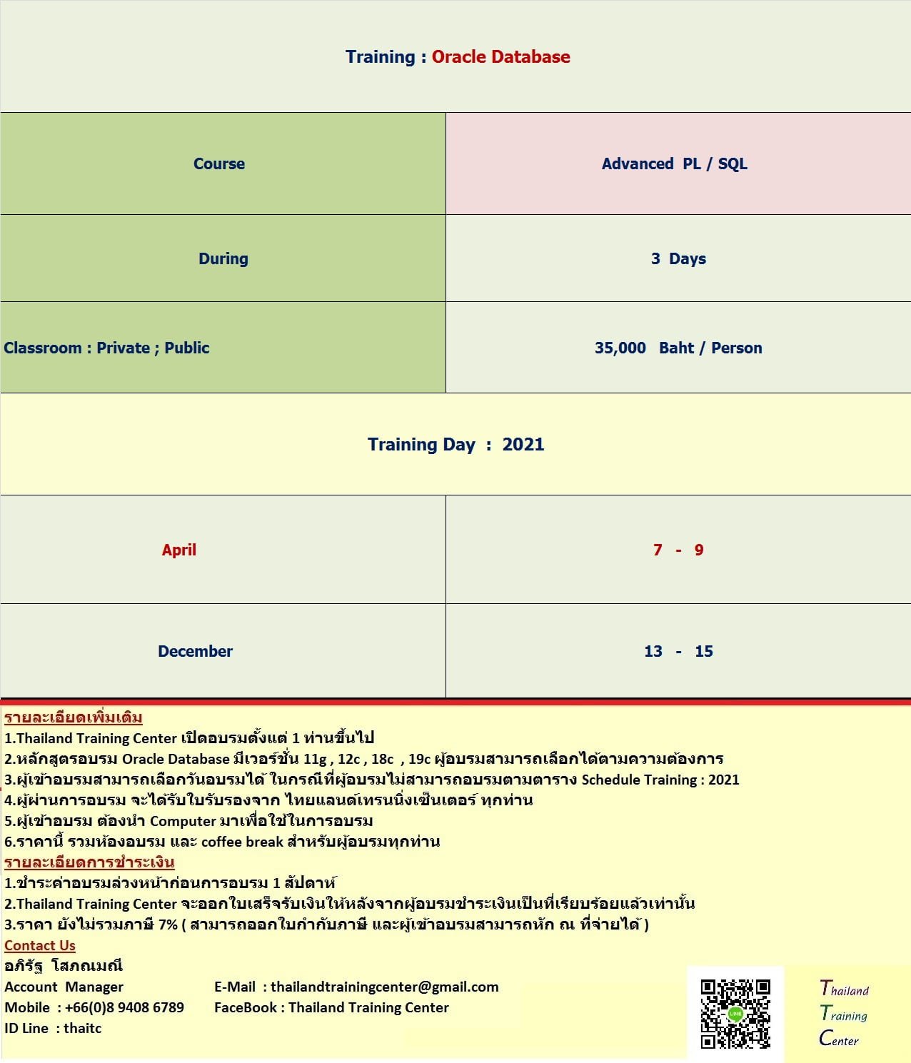 Thailand Training Center เปิดอบรมหลักสูตร Oracle Database : Advanced PL/SQL Programming