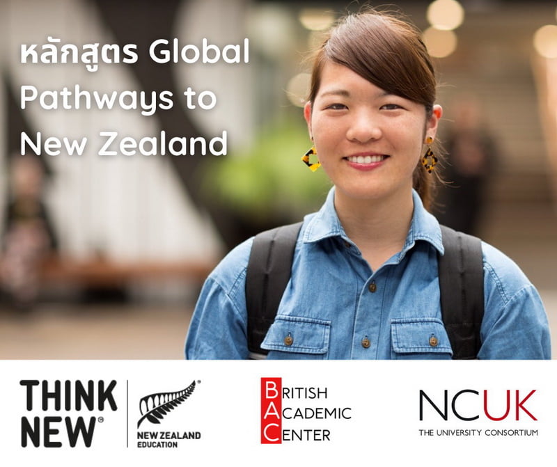 สำหรับ “หลักสูตร Global Pathway to New Zealand” ในประเทศไทยได้เปิดรับสมัครนักเรียนแล้ว ผู้สนใจสามารถดูข้อมูลเพิ่มเติมเกี่ยวกับคุณสมบัติผู้สมัครและรายละเอียด ได้ที่ https://www.studyinnewzealand.govt.nz/study-options/global-pathways/   หรือติดต่อ บริติช อะเคเดมิค เซ็นเตอร์ โทร. 02-513-3499