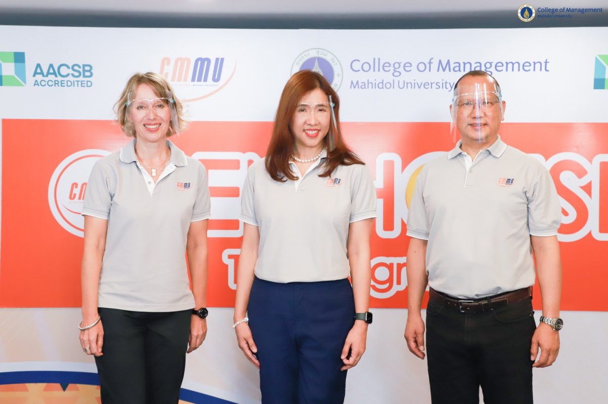 รศ. ดร. วิชิตา รักธรรม คณบดีวิทยาลัยการจัดการ มหาวิทยาลัยมหิดล (CMMU) (คนที่ 2 จากซ้าย) นำทีม ผศ. ดร. ธนพล วีราสา ประธานหลักสูตรภาษาไทย วิทยาลัยการจัดการ มหาวิทยาลัยมหิดล (คนที่ 3 จากซ้าย) และ รศ. ดร. แอสทริด ไคซบาวเออร์ ประธานหลักสูตรนานาชาติ วิทยาลัยการจัดการ มหาวิทยาลัยมหิดล (คนที่ 1 จากซ้าย) จัดงาน “ซีเอ็มเอ็มยู โอเพ่น เฮาส์ ไลฟ์ 2021” (CMMU Open House Live 2021) งานแนะแนวการศึกษาต่อปริญญาโท-ปริญญาเอกในรูปแบบออนไลน์ ครอบคลุมหลักสูตรไทยและหลักสูตรนานาชาติ พร้อมกิจกรรมจำนวนมาก อาทิ การถ่ายทอดภาพรวมหลักสูตรครบจบที่เดียว (Overview Program) เปิดห้องทดลองเรียน (Demo Class) และแนะนำสาขาวิชา/กลุ่มวิชาแบบเอ็กซ์คลูซีฟ (Specializations (Breakout Room) ณ วิทยาลัยการจัดการ มหาวิทยาลัยมหิดล เมื่อเร็วๆ นี้ โดยผู้สนใจศึกษาต่อสามารถสมัครเรียนได้ตั้งแต่วันนี้ – 24 พฤษภาคม 2564 ผ่าน www.cm.mahidol.ac.th/cmmu