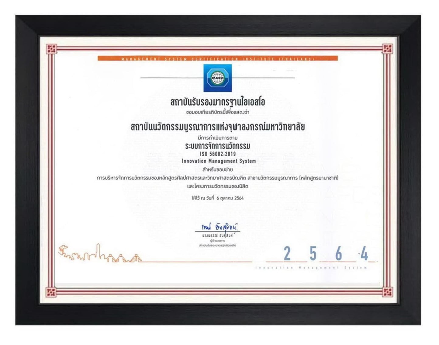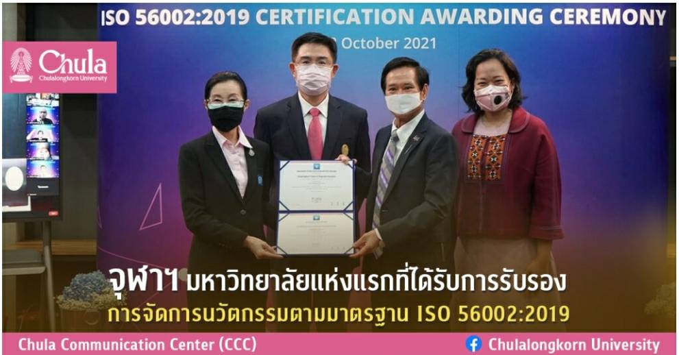 จุฬาลงกรณ์มหาวิทยาลัยได้รับการรับรองด้านการบริหารจัดการนวัตกรรมที่เป็นไปตามมาตรฐาน ISO 56002:2019 จากสถาบันรับรองมาตรฐานไอเอสโอ (Management System Certification Institute – MASCI) ซึ่งเป็นผลจากการประเมินระบบการจัดการนวัตกรรมของสถาบันนวัตกรรมบูรณาการแห่งจุฬาลงกรณ์มหาวิทยาลัย (Chulalongkorn School of Integrated Innovation: ScII) นับเป็นหลักสูตรของสถาบันอุดมศึกษาแห่งแรกในประเทศไทยและน่าจะเป็นแห่งแรกในภูมิภาคเอเชียที่ได้รับการรับรองมาตรฐานดังกล่าว