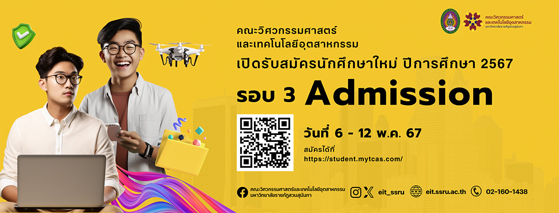 คณะเทคโนโลยีอุตสาหกรรม มหาวิทยาลัยราชภัฏสวนสุนันทา เปิดรับสมัครนักศึกษาใหม่ปีการศึกษา 2567 รอบ 3 Admission