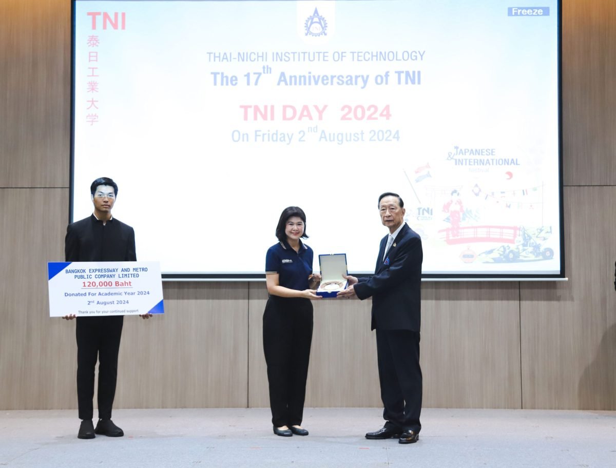 บริษัท ทางด่วนและรถไฟฟ้ากรุงเทพ จำกัด (มหาชน) หรือ BEM ตระหนักถึงความสำคัญของการพัฒนาบุคลากรโดยเฉพาะด้านการศึกษา จึงร่วมสนับสนุนทุนการศึกษาให้แก่นักศึกษาของสถาบันเทคโนโลยีไทย-ญี่ปุ่น หรือ TNI ประจำปี 2567 เป็นจำนวน 120,000 บาท พร้อมกันนี้ นายจิระพันธ์ อุลปาทร นายกสภาสถาบันเทคโนโลยีไทย-ญี่ปุ่น ยังได้มอบโล่ที่ระลึกแก่ นางภรณี กนิษฐานนท์ ผู้อำนวยการ ฝ่ายสื่อสารการตลาดและองค์กร BEM ในฐานะผู้สนับสนุนทุนการศึกษาสถาบันฯ มาอย่างต่อเนื่อง ภายในงานครอบรอบ 17 ปี TNI ณ สถาบันเทคโนโลยีไทย-ญี่ปุ่น ถ.พัฒนาการ
