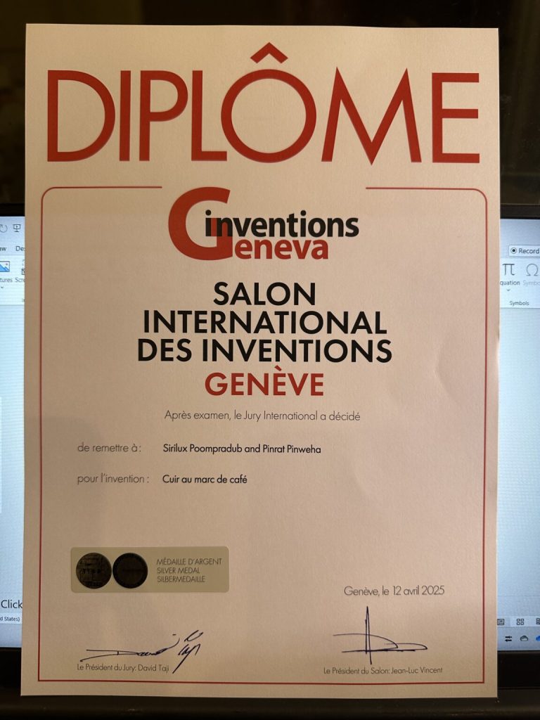 การได้รับรางวัลเหรียญเงินจากงานประดิษฐ์และนวัตกรรมที่กรุงเจนีวาถือเป็นการยืนยันคุณภาพของนวัตกรรมหนังสังเคราะห์จากกากกาแฟนี้ในเวทีโลก ซึ่งได้รับความสนใจจากคณะกรรมการที่บูธแสดงผลงาน นอกเหนือจากรางวัลเหรียญเงินเแล้ว ยังได้รับรางวัลพิเศษจากมหาวิทยาลัยในซาอุดิอาระเบีย เนื่องจากนวัตกรรมนี้มีจุดเด่นที่ชัดเจนในเรื่องการคำนวณคาร์บอนฟุตปริ้นท์ซึ่งเกิดน้อยกว่าวัสดุเดิมอย่างมีนัยสำคัญ