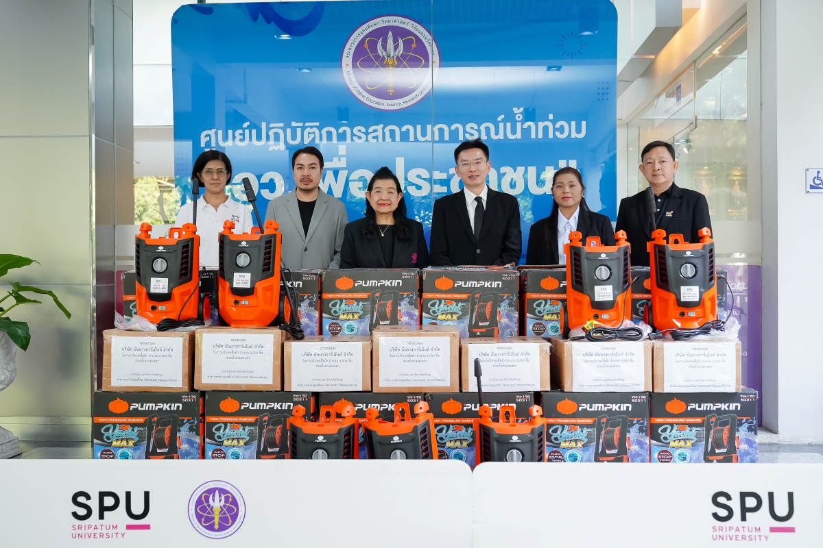 เมื่อวันที่ 2 ธันวาคม 2568 มหาวิทยาลัยศรีปทุม (SPU) ได้ส่งมอบ เครื่องฉีดน้ำแรงดันสูงจำนวน 100 เครื่อง และ เสื้อผ้าจำนวน 5,000 ชิ้น ผ่านกระทรวงการอุดมศึกษา วิทยาศาสตร์ วิจัยและนวัตกรรม (อว.) โดยได้รับเกียรติจาก ศ.ดร. ศุภชัย ปทุมนากุล ปลัดกระทรวงการอุดมศึกษา วิทยาศาสตร์ วิจัยและนวัตกรรม (อว.) เป็นผู้แทนรับมอบ เพื่อนำไปสนับสนุนภารกิจทำความสะอาดบ้านเรือน อาคาร และพื้นที่สาธารณะในจังหวัดสงขลาอย่างเร่งด่วน ซึ่งเป็นงานสำคัญที่ทุกภาคส่วนต้องเร่งดำเนินการทันทีหลังระดับน้ำลดลง ท่ามกลางภาระการฟื้นฟูที่เพิ่มขึ้นอย่างมาก