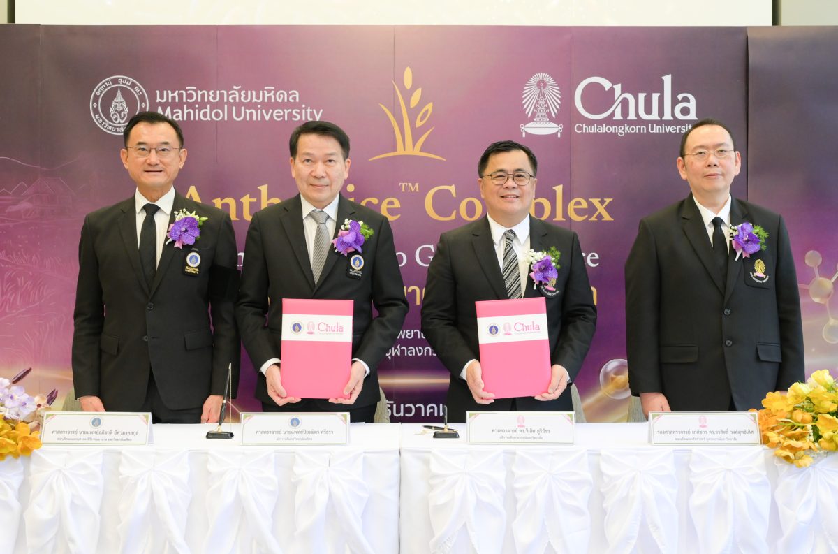 โครงการ AnthoRice™ Complex นับเป็นความร่วมมือครั้งแรกระหว่างสองมหาวิทยาลัยชั้นนำของประเทศในการพัฒนาเวชสำอางจากข้าวไทยแบบครบวงจร ตั้งแต่ต้นน้ำถึงปลายน้ำ โดยใช้วัตถุดิบจากวิสาหกิจชุมชนเกษตรอินทรีย์จังหวัดพิจิตร ผ่านกระบวนการวิจัยและพัฒนาในห้องปฏิบัติการมาตรฐานสากล การผลิตภายใต้มาตรฐาน GMP และการทดสอบทางคลินิกในสถาบันการแพทย์ระดับประเทศ นอกจากนี้ยังมีการลงนามถ่ายทอดเทคโนโลยีให้แก่ บริษัท จุฬาฟาร์เทค จำกัด และบริษัท ไทธนบุรี คอร์ปอเรชั่น จำกัด เพื่อขับเคลื่อนนวัตกรรมสู่การใช้จริงเชิงพาณิชย์และการขยายตลาดในอนาคต อีกทั้งยังเป็นการตอบโจทย์เป้าหมายการพัฒนาที่ยั่งยืน (SDGs) ข้อ 2, 8, 9 , 12 และ 17 อีกด้วย