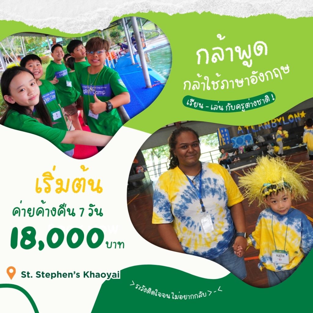 ปิดเทอมนี้ St. Stephen’s English & Adventure Camp 2026 – Khao Yai เปิดโอกาสให้น้อง ๆ นักเรียนอายุ 6-15 ปีจากทั่วประเทศ ได้ก้าวออกจากห้องเรียนเดิม ๆ สู่ประสบการณ์การเรียนภาษาอังกฤษรูปแบบใหม่ ผ่านการใช้ชีวิตจริงท่ามกลางธรรมชาติของเขาใหญ่ ณ ค่ายภาษาอังกฤษที่จัดต่อเนื่องมากว่า 20 ปี และได้รับความไว้วางใจจากผู้ปกครองกว่า 1,000 ครอบครัว