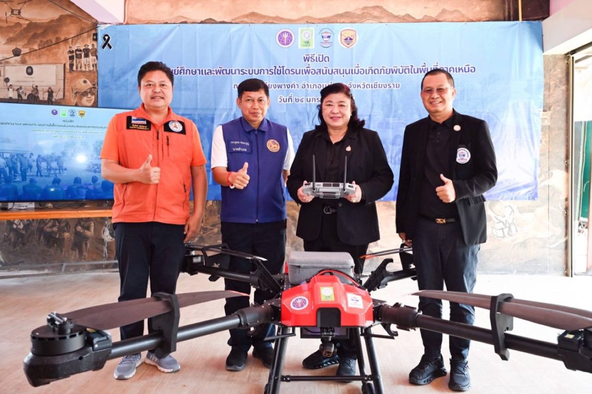 สำนักงานการวิจัยแห่งชาติ(วช.) กระทรวงการอุดมศึกษา วิทยาศาสตร์ วิจัยและนวัตกรรม ร่วมกับ สมาคมกีฬาเครื่องบินจำลองและวิทยุบังคับ จัด “พิธีเปิดศูนย์ศึกษาและพัฒนาระบบการใช้โดรนเพื่อสนับสนุนเมื่อเกิดภัยพิบัติในพื้นที่ภาคเหนือ” เพื่อเตรียมความพร้อมรับมือการเกิดภัยพิบัติในพื้นที่ภาคเหนือ โดย ดร.วิภารัตน์ ดีอ่อง ผู้อำนวยการสำนักงานการวิจัยแห่งชาติ เป็นประธาน โดยมี นายพิศิษฐ์ มิตรเกื้อกูล นายกสมาคมกีฬาเครื่องบินจําลองและวิทยุบังคับ กล่าวรายงาน, นายบัณฑิตย์ พันธ์พลากร ประธานศูนย์การจัดการภัยพิบัติเพื่อนพึ่ง(ภาฯ) ตำบลเวียงพางคำ กล่าวขอบคุณ, นายวรายุทธ ค่อมบุญ นายอำเภอแม่สาย กล่าวต้อนรับ และผู้ทรงคุณวุฒิ วช. เข้าร่วมในพิธี ณ ศูนย์การจัดการภัยพิบัติเพื่อนพึ่ง(ภาฯ) ตำบลเวียงพางคำ อำเภอแม่สาย จังหวัดเชียงราย