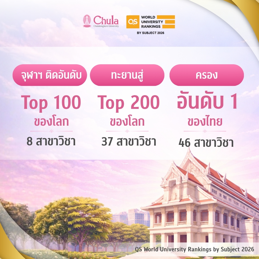 จุฬาลงกรณ์มหาวิทยาลัยตอกย้ำภาพลักษณ์การเป็นสถาบันการศึกษาชั้นนำของประเทศและระดับสากลอีกครั้ง กับผลการจัดอันดับมหาวิทยาลัยโลกตามสาขาวิชา “QS World University Rankings by Subject ประจำปี 2026” ซึ่งในปีนี้จุฬาฯ ได้รับการประเมินและจัดอันดับรวมทั้งสิ้นถึง 60 สาขาวิชา ผลลัพธ์ในปี 2026 สะท้อนให้เห็นถึงศักยภาพทางวิชาการและการวิจัยที่แข็งแกร่ง โดยมีสถิติที่น่าภาคภูมิใจ ดังนี้