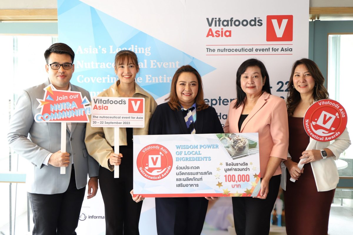 Ms. Rungphech Chitanuwat (In the middle), Regional Portfolio Director – ASEAN, Informa Markets Thailand, recently announced the “Vitafoods Asia 2023” to be held in Thailand. Joining her are Ms. Sirinan Thubthimthed, (2nd from right), Director of Expert Centre of Innovative Herbal Products – Thailand Institute of Scientific and Technological Research (TISTR), and representatives from Kasetsart Agricultural and Agro-Industrial Product Improvement Institute on behalf of the judging committee of the “Vitafoods Asia Nutraceutical Awards.” The contest invites interested persons to submit prototype or product concept of dietary supplements, functional foods & beverages, and all kinds of extracts into this contest for a chance to win a cash prize with a total value of over 100,000 baht and quality certificate which can be used to support commercialization of the products. Moreover, the product idea/prototype of the winner and candidates will be showcased among global participants at Vitafoods Asia 2023.