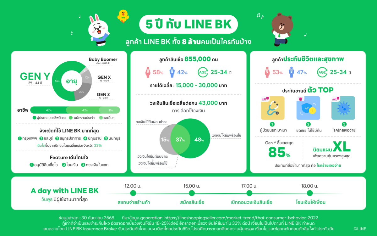 Marking its 5th anniversary, LINE BK, the pioneer of Social Banking that integrates financial transactions—deposits, transfers, QR payment, loans, and insurance—within a LINE app. LINE BK is now stepping into its next phase as the “Everyday Financial Partner.”, which committed to making financial matters more accessible and convenient. Aiming to be a reliable partner, standing by users through times of prosperity and through the challenges posed by the current economic environment.