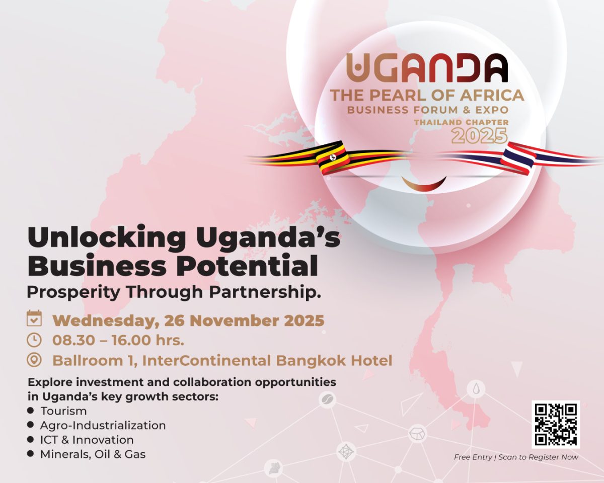 The Uganda High Commission in Kuala Lumpur, accredited to the Kingdom of Thailand, proudly announces The Pearl of Africa – Uganda Business Forum & Expo 2025 – Thailand Chapter, under the theme “Unlocking Uganda’s Business Potential, Prosperity Through Partnerships,” to be held on 26 November 2025 at the Intercontinental Hotel, Bangkok.