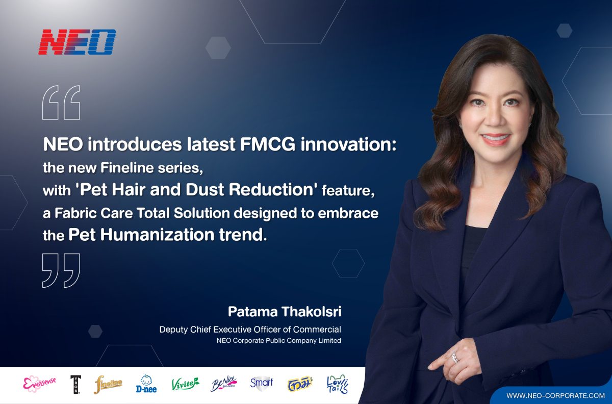 NEO Corporate Public Company Limited (NEO), Thailand’s leading FMCG innovator, reinforces its role as a Segment Creator in the Fabric Care market with its innovative solution to reduce pet hair and dust. Addressing a major pain point for modern consumers, especially urban families and pet lovers, this strategic development expands the Fineline Premium Care Series, one of the company’s key innovations, into a comprehensive Fabric Care Total Solution. It is meticulously designed to elevate clothing care standards, perfectly aligning with the Pet Humanization lifestyle and everyday fabric maintenance.
