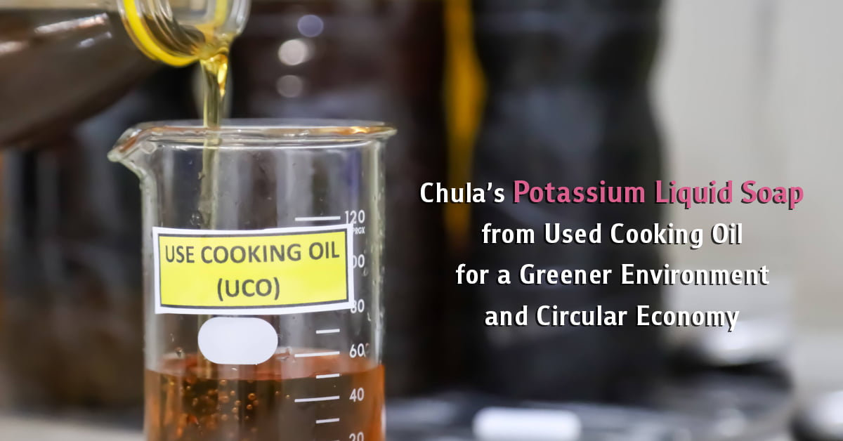 Chula Environmental Research Institute (ERIC) researcher has developed potassium liquid soap from used cooking oil to add value to community waste and enhance the community’s potential in waste management and organic farming.