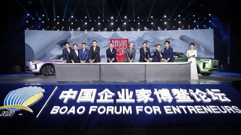 Caption: China’s iconic sedan brand Hongqi unveils its new model E-HS9 at the 2020 Boao Forum for Entrepreneurs