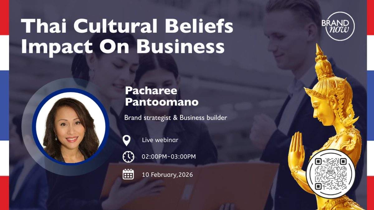 In the upcoming webinar, “Thai Cultural Beliefs: Impact on Businesses,” Pacharee Pantoomano from Brandnow.asia shares exclusive insights gained from supporting over 40 successful market entries, including giants like Grab and Lalamove. This dive into Thai values and belief systems is the secret weapon for any seamless Go-To-Market (GTM) strategy.