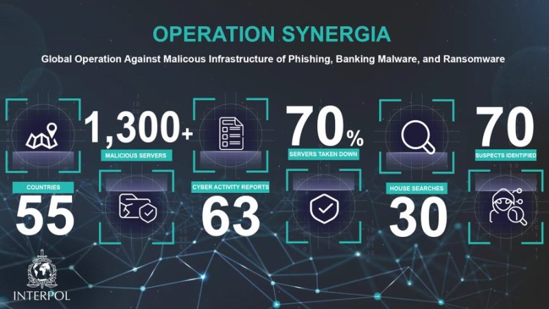 Some 1,300 suspicious servers relating to various cybercrimes have been identified as part of the joint effort. As a result, investigators were able to take actions on 70% of those malicious servers and also apprehend suspected perpetrators across multiple states.