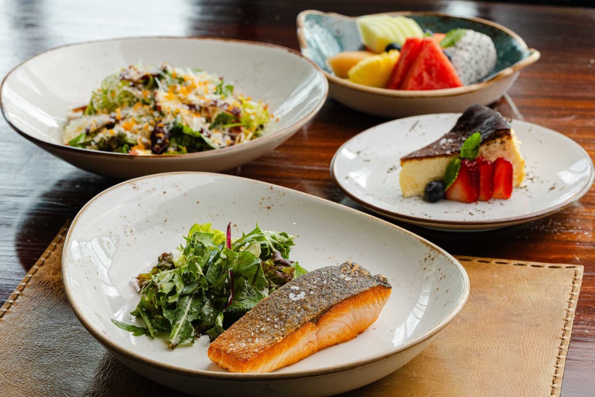 Guests can begin with either an UNO MAS mixed salad with Ibérico ham and apple or a Tortilla Española, the traditional Spanish omelette with potato. For the main course, choose between Albondigas de la Abuela, a comforting meatball stew, or Salmon a la Plancha con Ensalada, pan-seared salmon served with a light salad. Dessert brings a choice of the signature Basque cheesecake, a fresh fruit platter, or coffee or tea to end on a mellow note.