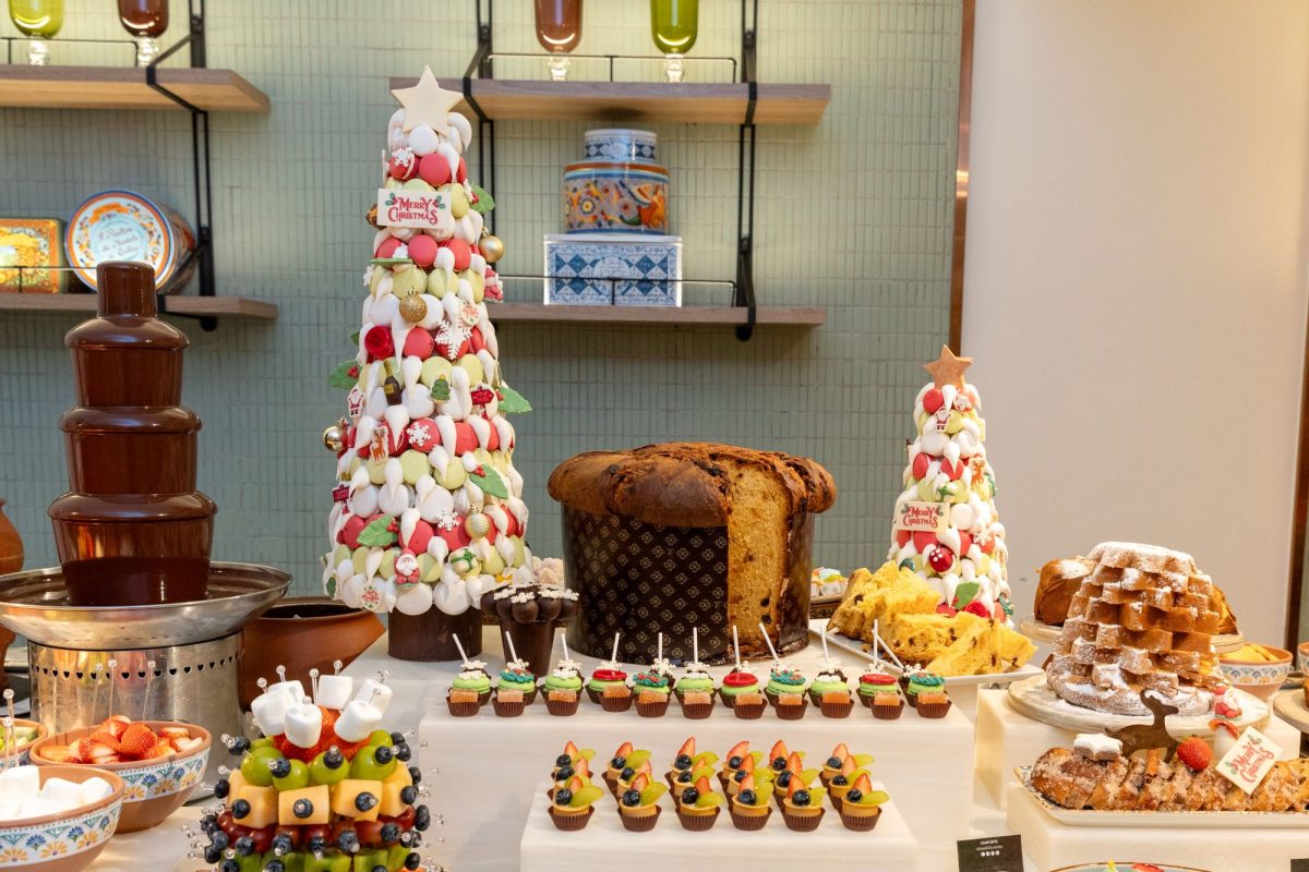 The celebration begins with an impressive seafood spread featuring river prawns, slipper lobsters, mussels, prawns, and oysters, complemented by a selection of sushi and sashimi. Guests can also explore a variety of starters, fresh salads, artisanal breads, and comforting soups before moving on to an enticing selection of Thai dishes and Italian classics. Traditional festive highlights include honey-glazed ham, mashed potatoes with Brussels sprouts, roasted Christmas turkey, and prime rib. A generous dessert counter brings the meal to a close with pastries, cakes, sweet treats, and a curated range of international cheeses.