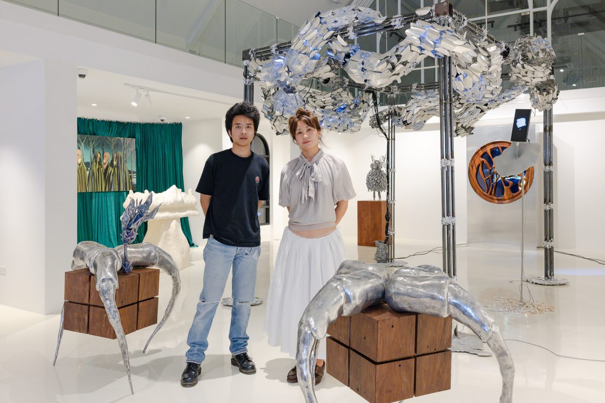 Roots & Rituals features works by Dishon Yuldash and Swatchrokorn Wannasorn. Dishon Yuldash explores memory and transformation through sculpture, using smooth, fluid forms that respond to light and the viewer’s movement. Swatchrokorn Wannasorn draws on the ritual traditions of Northern Thailand, creating works inspired by mythical figures associated with protection, strength, and humanity’s relationship with nature, expressed through textured, tactile forms.