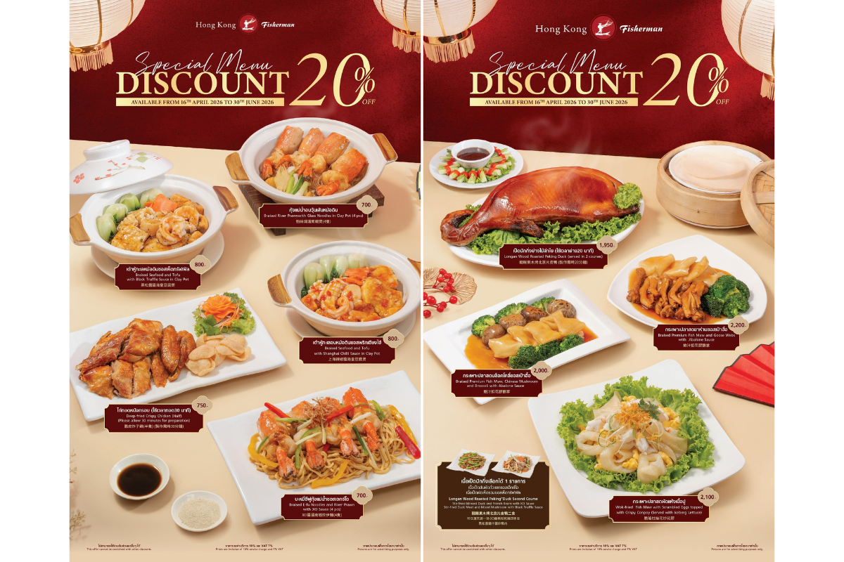 “Hong Kong Fisherman,” the premium Chinese dining landmark at IMPACT Muang Thong Thani, has announced an exclusive promotion offering a 20% discount on 9 highlighted signature dishes. These selections feature world-class ingredients prepared with authentic, traditional Hong Kong culinary techniques. Prices start from 560 – 1,760 THB (discounted from 700 – 2,200 THB), available from now until June 30, 2026.
