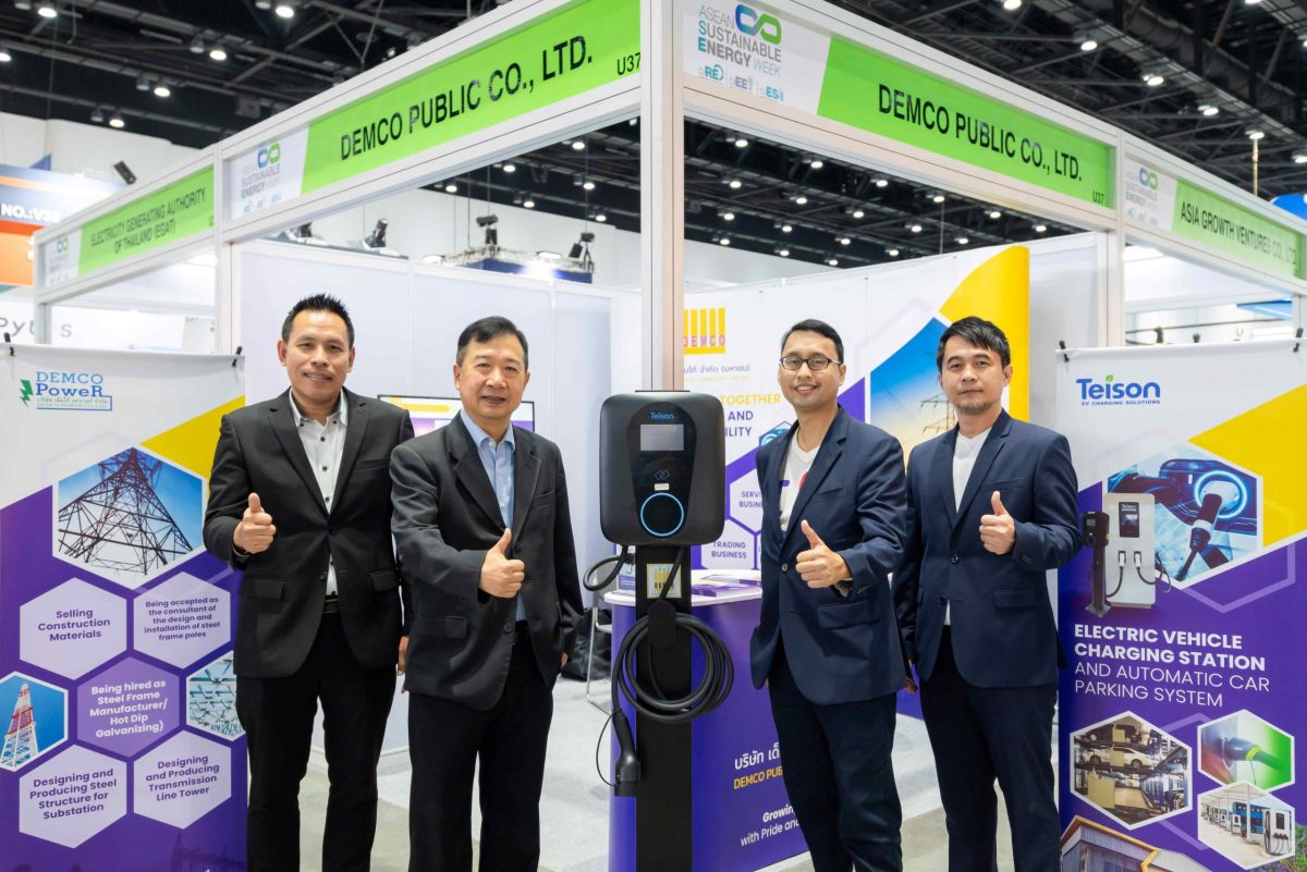 บมจ. เด็มโก้ (DEMCO) นำทีมโดย ดร.ประสิทธิ์ชัย วีระยุทธวิไล (ที่ 2 จากซ้าย) ประธานเจ้าหน้าที่บริหารธุรกิจนวัตกรรมวิศวกรรมปฏิบัติการ ร่วมออกบูธในงาน “ASEAN Sustainable Energy Week & Electric Vehicle Asia 2024” ซึ่งจัดโดยกระทรวงพลังงาน, อินฟอร์มา มาร์เก็ตส์ ประเทศไทย และภาคีเครือข่ายด้านพลังงาน โดย DEMCO ได้นำเครื่องชาร์จรถยนต์ไฟฟ้า (EV Charger) ขนาด 22 Kw จัดโชว์ที่บูธด้วย งานดังกล่าวจัดขึ้นระหว่างวันที่ 3-5 กรกฎาคม 2567 ณ ศูนย์ประชุมแห่งชาติสิริกิติ์ กรุงเทพฯ