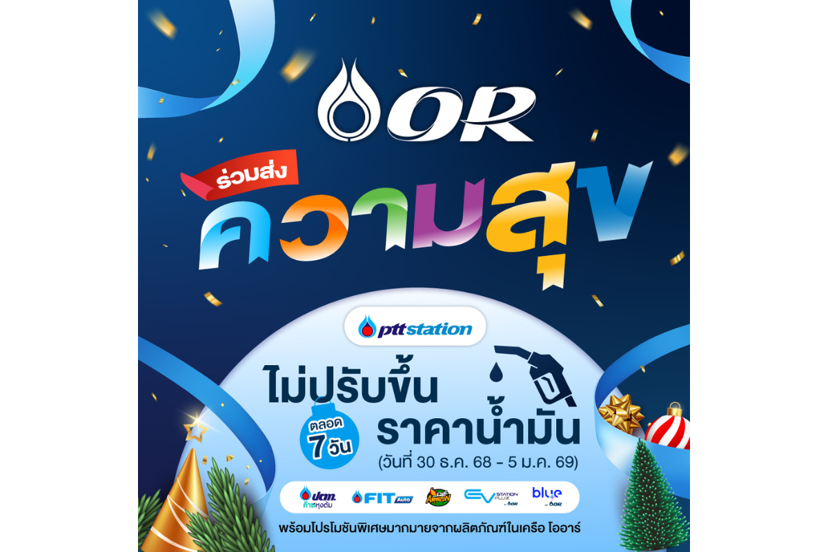 ตั้งแต่วันที่ 25 ธ.ค 68 รวมทั้งไม่ปรับขึ้นราคาน้ำมัน 7 วัน ช่วงเทศกาลปีใหม่ 2569 พร้อมโปรโมชันอีกมากมายจากแบรนด์ในเครือ OR