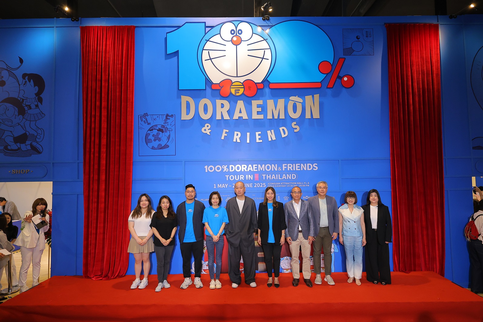 ด้านคุณพิชชาภา ณรงค์พันธ์ กรรมการผู้จัดการ Japan Anime Movie Thailand ภายใต้การดูแลของ บริษัท ไฟว์สตาร์ เอเจนซี่ จำกัด เปิดเผยว่า นิทรรศการ 100% DORAEMON & FRIENDS TOUR IN THAILAND เป็นโปรเจกต์เวิลด์ทัวร์ของโดราเอมอนที่ใหญ่ที่สุดในโลก จัดขึ้นโดย Creative brand All Rights Reserved (ARR) และ Fujiko Pro เพื่อฉลองครบรอบ 90 ปี ของโดราเอมอนและผองเพื่อน ซึ่งได้จัดขึ้นแล้วในฮ่องกง และเซี่ยงไฮ้ และได้รับกระแสตอบรับจากผู้เข้าชมงานอย่างล้นหลาม ด้วยยอดผู้เข้าชมกว่า 400,000 ครั้งที่ฮ่องกง โดยจะจัดขึ้นในประเทศไทยเป็นประเทศที่ 3 บนพื้นที่การจัดแสดงกว่า 3,000 ตารางเมตร เพื่อให้ผู้ชมได้พบและย้อนวัยไปกับเจ้าหุ่นยนต์แมวตัวสีฟ้าที่ครองใจผู้คนทั่วโลก ด้วยกองทัพคอลเลกชันหุ่นโดราเอมอนและเพื่อนๆ ขนาดเท่าตัวจริงถึง 111 ตัว และโดราเอมอนยักษ์ความสูงกว่า 12 เมตร พร้อมด้วยภาพวาดต้นฉบับที่จำลองมาจากการใช้แปรงของ ฟุจิโกะ เอฟ ฟุจิโอะ และของวิเศษที่จะเผยโฉมในประเทศไทย