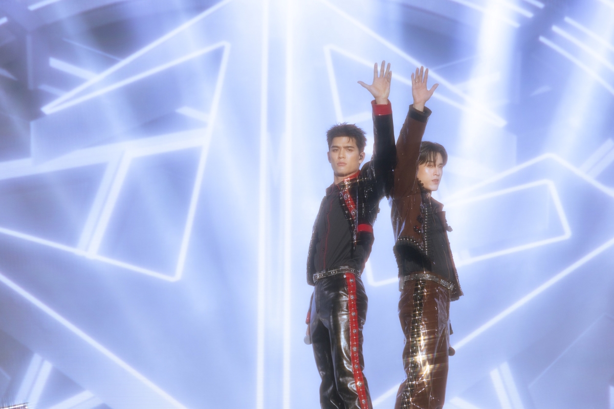 บรรยากาศภายในงานเต็มไปด้วยความคึกคักตั้งแต่เริ่ม แสง สี เสียง และโปรดักชั่นสุดอลังการที่ถูกออกแบบมาอย่างลงตัวเพราะเชื่อมโยงแฟนๆ เข้าสู่โลกของ “จอส-กวิน” อย่างสมบูรณ์แบบ พร้อมเปิดตัวสองหนุ่มด้วยโชว์สุดเท่ที่มาเติมพลังความสุขให้ทุกคนผ่านเสียงดนตรีและบทเพลงที่มีความหมายมากมาย อาทิ “Superstar, 3 มิติ และ “รู้แค่ผมรักคุณก็พอ” แล้วส่งต่อความผูกพันที่ร้อยเรื่องราวของพวกเขาเข้าด้วยกัน โดย “จอส” มาในเพลง “ภวังค์” ส่วน “กวิน” มากับเพลง “Don’t Look Back in Anger” ก่อนจะเข้าโหมดที่บอกเลยว่าติดตราตรึงใจหลายๆ คนกับบทบาทของทั้งคู่ในซีรีส์สุดปัง “My Golden Blood เลือดนายลมหายใจฉัน” จนตกแฟนๆ เข้าด้อมกันเพียบ อย่าง เพลง “Just You” และ “Ever After” เวอร์ชั่นพิเศษในแฟนคอนครั้งนี้ หลังจากนั้นมาถึงพาร์ท Water & Earth ที่ทั้งคู่ต่างดีไซน์ความเป็นตัวเองผ่านโชว์เดี่ยวของแต่ละคนไว้อย่างน่าทึ่ง ซึ่ง “กวิน” ก็ได้จัดเต็มแบรนด์ดนตรีครบเครื่องกับเพลง “Creep, Memories” และ “Mystery of Love” สะกดคนดูให้ตกอยู่ในภวังค์สุดๆ ด้าน “จอส” ก็ไม่ธรรมดาปล่อยพลังเสียงเพราะๆ ผ่านเพลง “No Blueberries, เหงาเป็น” และ “ทางของฝุ่น” กระชากใจแฟนๆ ส่งเสียงกรี๊ดลั่นสนั่นฮอลล์เลยทีเดียว