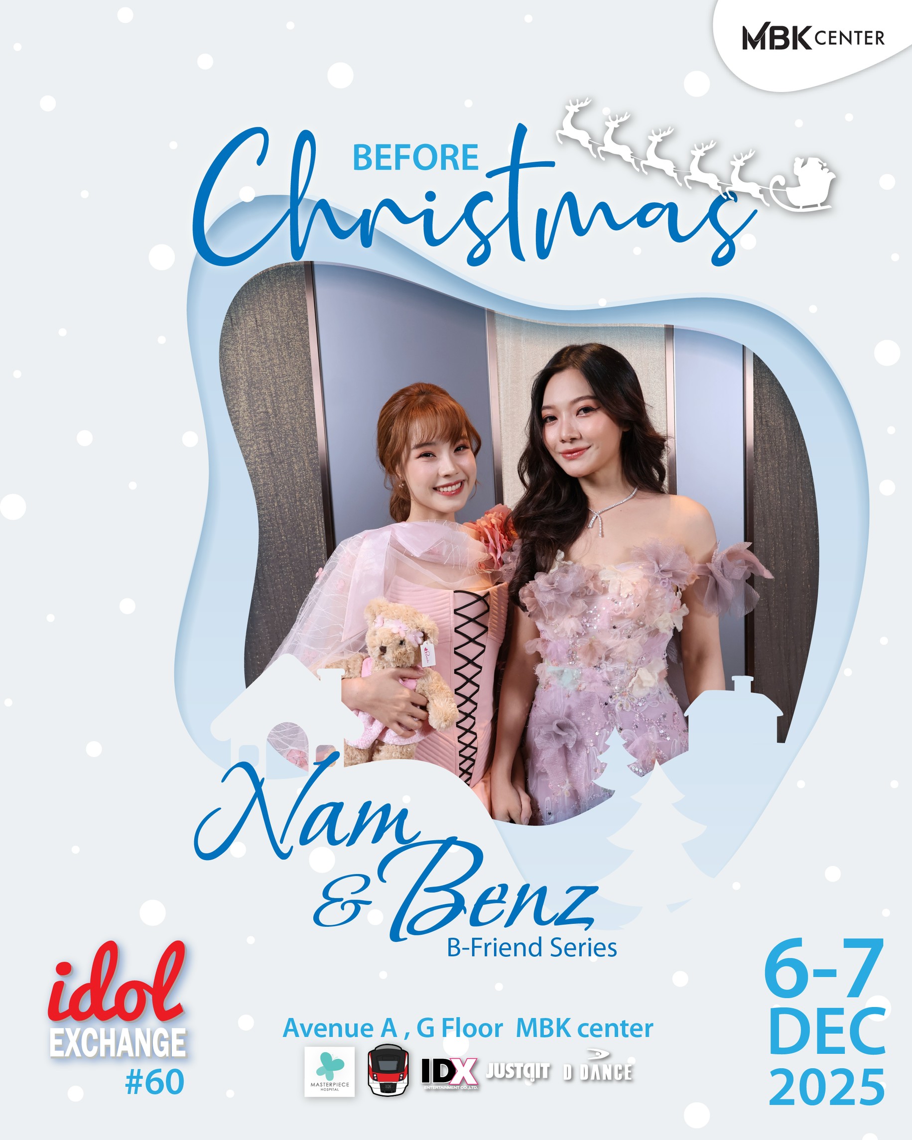 ศูนย์การค้าเอ็ม บี เค เซ็นเตอร์ ร่วมกับ IDX ชวนมาฉลองเทศกาลคริสต์มาสก่อนใครกับงาน Idol Exchange ครั้งที่ 60 ในธีม BEFORE Christmas ระหว่างวันเสาร์ที่ 6 – วันอาทิตย์ที่ 7 ธันวาคม 2568 ตั้งแต่เวลา 13.30 – 18.00 น. บริเวณลานกิจกรรมเอ็ม บี เค อเวนิว โซน A เข้าชมฟรี!! อีเวนต์ทางดนตรีที่รวบรวมเหล่า T-Pop และ ศิลปิน Idol ไว้มากที่สุด ใจละลายกับหนุ่ม ๆ จาก Boy Friend project เสิร์ฟความฟินแบบจุใจกับ น้ำ-จุฑามาศ และ เบนซ์-ทิพย์สุวรรณ 2 นักแสดงสาวสวยจาก B•Friend เจตนา (ไม่) ลืม ซีรีส์แนวยูริสุดฟิน เล้ง – ณัฐพล และ แสตมป์ – พรวศิน จากซีรีส์ฮิต “ลอยแก้ว” และ “วัยซ่าส์ท้ามิติ” พร้อมด้วยโชว์สุดพิเศษจาก KRU BELL CHINA DOLLS STUDIO นอกจากนี้ยังมี RINA KAMATA, LITTLE BEE’S CLUB, MELODY STAR, RAIFY, FiiMONiX, NON-SAINT, PROCESSSA, ONGLEE, BLOZZOM, FLEURVIVE, 2ND DIMENSION, DISSY, WISSY, NHONNAM, CASPIA, SUSHI, TWENTYTWO22IDOL, MYSTIC, MAMMO – THIUNDER, JOSH DESU, BOY FRIEND, BLKGEM และ VViBE ห้ามพลาดสัมผัสบรรยากาศความสนุกแสนอบอุ่นกับกิจกรรมความบันเทิงมากมาย