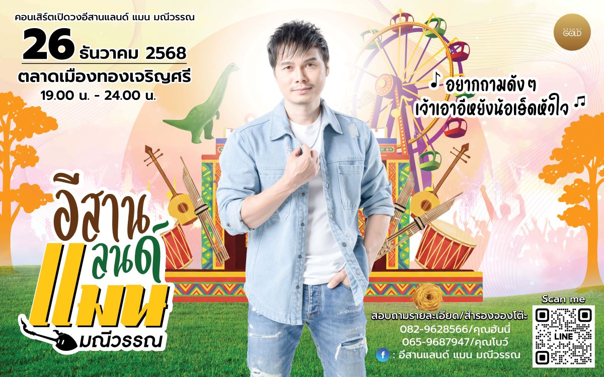 แฟนคอลูกทุ่งหมอลำเตรียมนับถอยหลังสู่ค่ำคืนแห่งความสุข สนุกสนาน ย้อนวันวานไปกับเจ้าพ่อเพลงเศร้า “แมน มณีวรรณ” กับคอนเสิร์ตเปิดตัวแบบ Full Band เต็มรูปแบบครั้งแรก! ในชื่อ “อีสานแลนด์ แมน มณีวรรณ” ที่จะชวนแฟนๆ มาร่วมม่วนซื่นส่งท้ายปีเก่าต้อนรับปีใหม่ ในวันที่ 26 ธันวาคม 2568 นี้ ที่ตลาดเมืองทองเจริญศรี อ.เมือง จ.อุดรธานี ตั้งแต่เวลา 19.00 น. เป็นต้นไป กับระบบเวที แสง สี เสียง จัดหนักยาว ๆ เต็มอิ่มกับการโชว์ 5 ชั่วโมงเต็ม