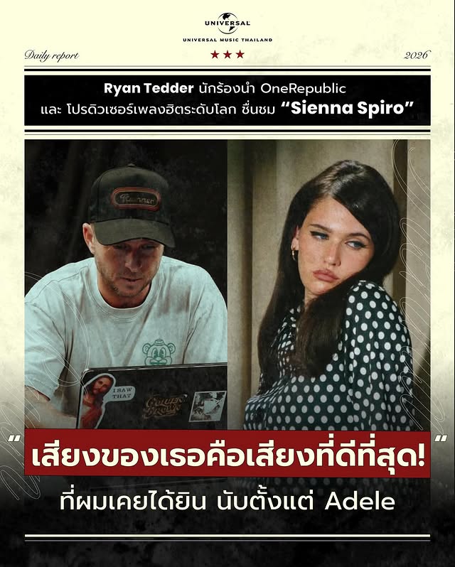 ชมคลิป Ryan Tedder ให้สัมภาษณ์ชื่นชม SIENNA SPIRO ที่นี่