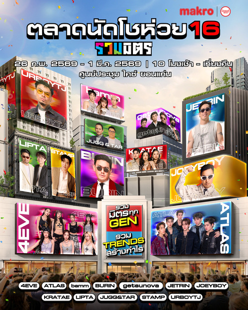บอกเลยว่างานนี้ไม่ได้มีดีแค่เรื่องธุรกิจ! เพราะเวที รวมมิตร Festival ในงาน “ตลาดนัดโชห่วย16 รวมมิตร” รวมมิตร ทุก Gen รวม Trend สร้างกำไร ที่ไคซ์–ขอนแก่น เตรียมกลายเป็นแลนด์มาร์กความมันส์ของภาคอีสาน ปลายเดือนกุมภาพันธ์นี้