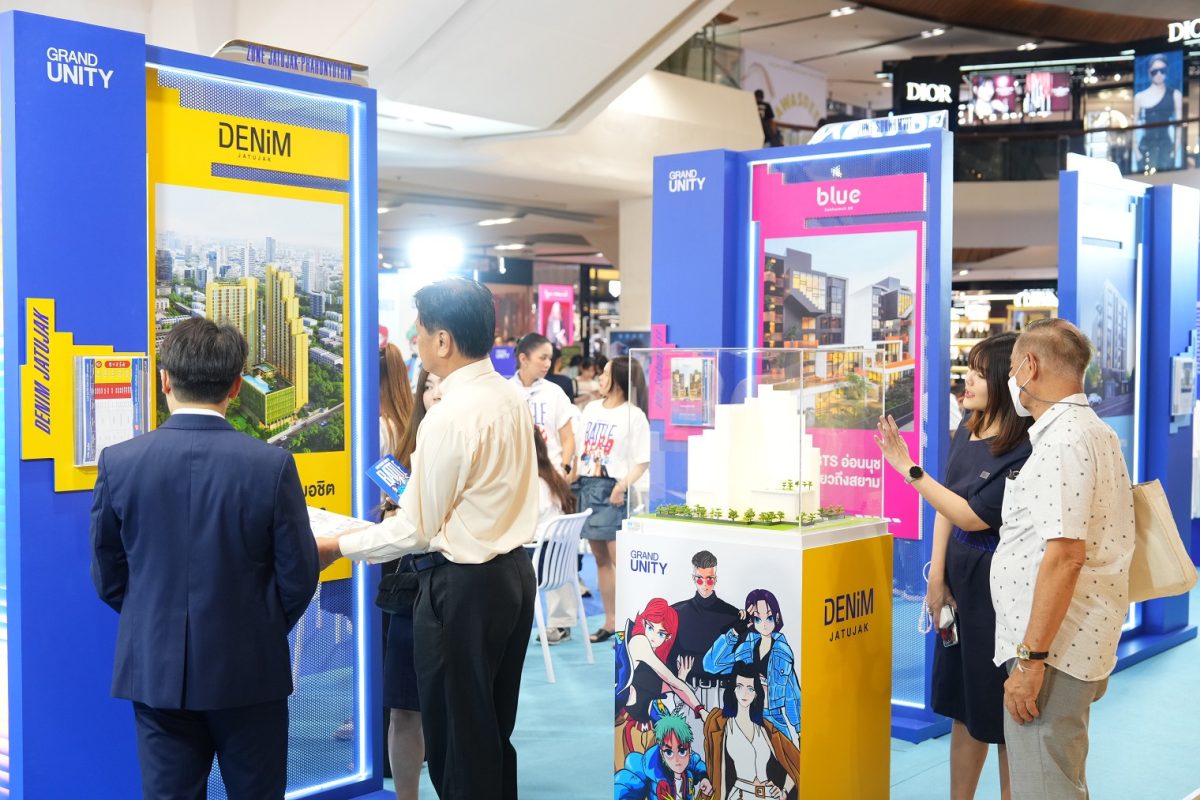 “สำหรับการจัดงานในครั้งนี้ บริษัทฯ ได้นำ 10 โครงการคอนโดมิเนียมคุณภาพพร้อมอยู่ ใกล้รถไฟฟ้า ที่คัดสรรยูนิตพิเศษและราคาพิเศษมาเพื่องานนี้โดยเฉพาะ พร้อมมอบข้อเสนอที่ดีที่สุดแห่งปีภายใต้แคมเปญ “เปิดศึกจอง 0 บาท” ซึ่งมีโปรโมชันและสิทธิพิเศษที่ตรงใจลูกค้าที่มาร่วมชมงาน โดยในงานนี้ บริษัทฯ ยังสร้างความแตกต่างและดึงดูดความสนใจจากกลุ่มเป้าหมาย ผ่านกลยุทธ์ Character Marketing ซึ่งมี 5 คาแรคเตอร์นักสู้สุดเท่ที่สะท้อนตัวตนของ 5 แบรนด์คอนโดมิเนียม ได้แก่ BLUNA บลูน่า (แบรนด์ blue), DENYX เด็นนิกซ์ (แบรนด์ DENIM), CIELON เซียลอน (แบรนด์ CIELA), MAZAROX มาซาร็อกซ์ (แบรนด์ MAZARINE) และ ANICIA อนิเซีย (แบรนด์ ANIL) ทั้งหมดนี้ล้วนได้รับกระแสตอบรับอย่างดีเยี่ยมจากกลุ่มลูกค้าเป้าหมาย ทั้งกลุ่มผู้ที่ซื้อเพื่ออยู่อาศัยและกลุ่มนักลงทุน จนสามารถทำยอดขายรวมกันได้ตามเป้า ซึ่งสะท้อนให้เห็นถึงความเชื่อมั่นของลูกค้าที่มีต่อแบรนด์ แกรนด์ ยูนิตี้ ด้วยจุดเด่นของแต่ละโครงการ ทั้งด้านการออกแบบ ทำเลที่ใกล้รถไฟฟ้า และเป็นการตอกย้ำถึงแคมเปญที่สามารถปลดล็อกภาระและตอบโจทย์อินไซต์ของผู้ที่ต้องการเป็นเจ้าของคอนโดมิเนียมได้อย่างแท้จริง