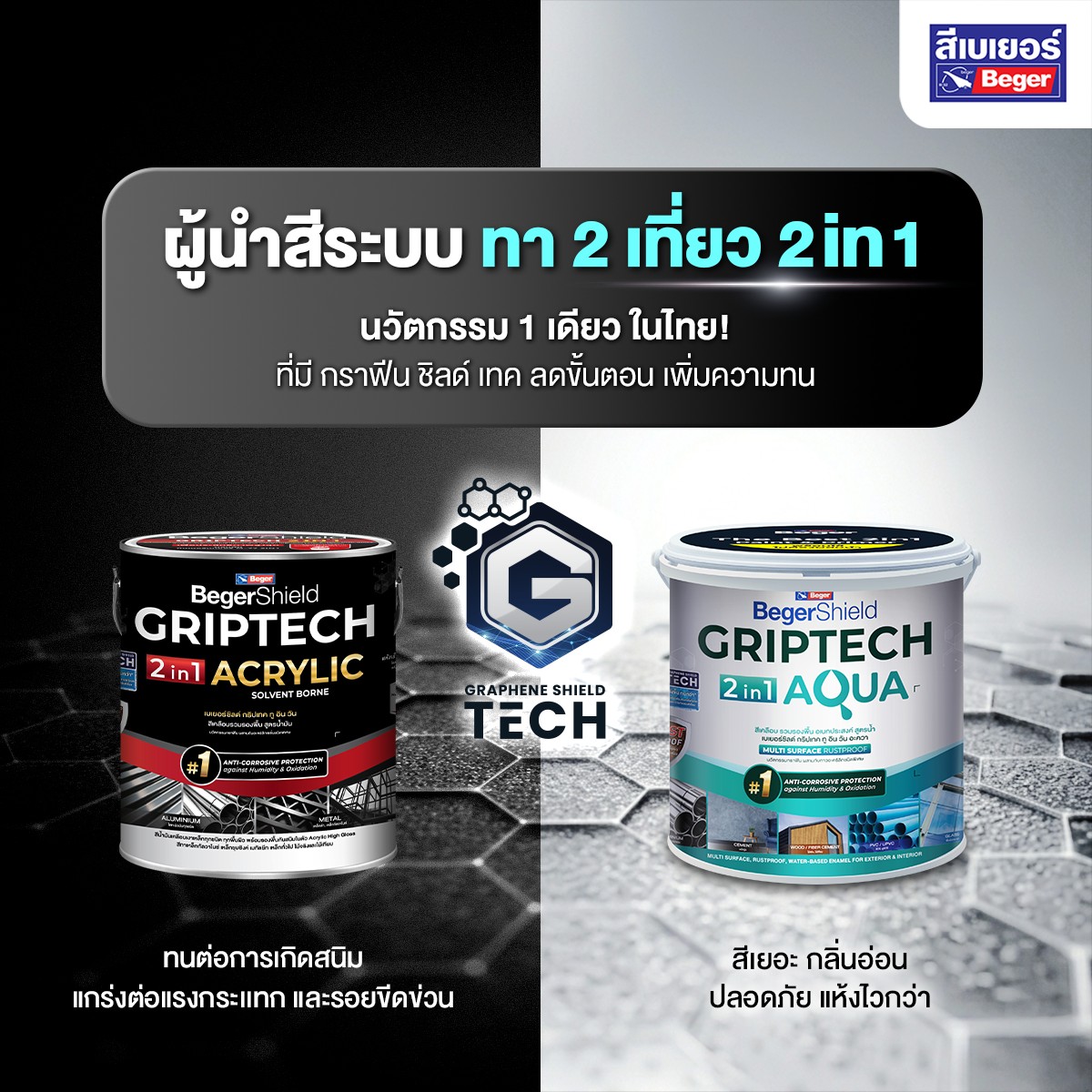 บริษัท เบเยอร์ จำกัด ตอกย้ำความเป็นผู้นำตลาดสี 2in1 ของประเทศไทย เดินหน้ายกระดับมาตรฐานอุตสาหกรรมอีกครั้ง ด้วยการเปิดตัว “BegerShield Griptech 2in1” นวัตกรรมสีสำหรับงานเหล็กโดยเฉพาะ ที่พัฒนาขึ้นภายใต้แนวคิด “ความทนขั้นกว่า” เพื่อตอบโจทย์การใช้งานจริงในสภาพแวดล้อมที่ท้าทายมากยิ่งขึ้น