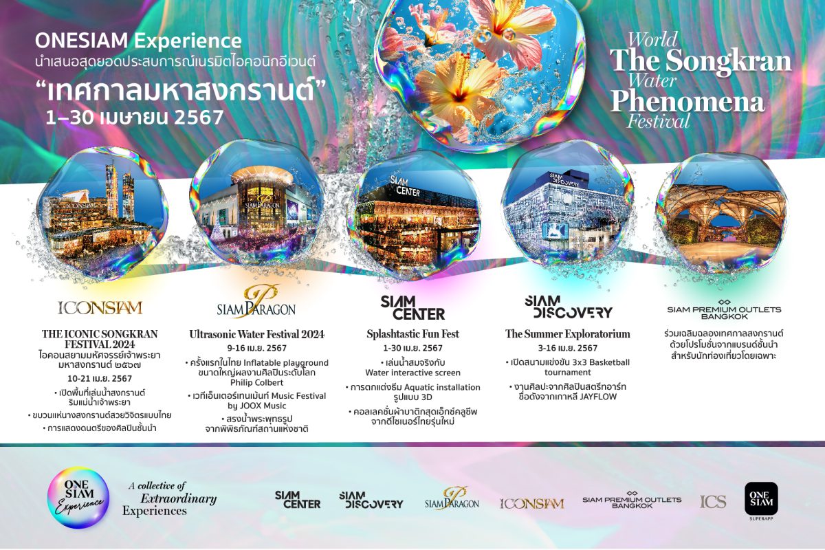 สยามพิวรรธน์ ตอกย้ำความเป็นผู้นำในการพัฒนาจุดหมายปลายทางระดับโลก รวมพลังนำเสนอสุดยอดประสบการณ์ ONESIAM Experience ที่เกิดจากการผนึกพลังความแข็งแกร่งของโกลบอลเดสติเนชั่นใจกลางกรุงเทพฯ คือ สยามพารากอน สยามเซ็นเตอร์ และ สยามดิสคัฟเวอรี่ ร่วมกับ ไอคอนสยาม แลนด์มาร์กระดับโลกริมแม่น้ำเจ้าพระยา ไอซีเอส และ สยาม พรีเมี่ยม เอาท์เล็ต กรุงเทพ ลักซ์ซูรี่เอาท์เล็ตระดับโลกแห่งเดียวในไทย รวมทั้ง ONESIAM SuperApp ร่วมสร้างมหาปรากฏการณ์แห่งความมหัศจรรย์เนรมิตไอคอนิกอีเวนต์ “เทศกาลมหาสงกรานต์” ภายใต้ธีม “World Water Festival: The Songkran Phenomena” อย่างยิ่งใหญ่ตระการตาตลอดเดือนเมษายน 2567