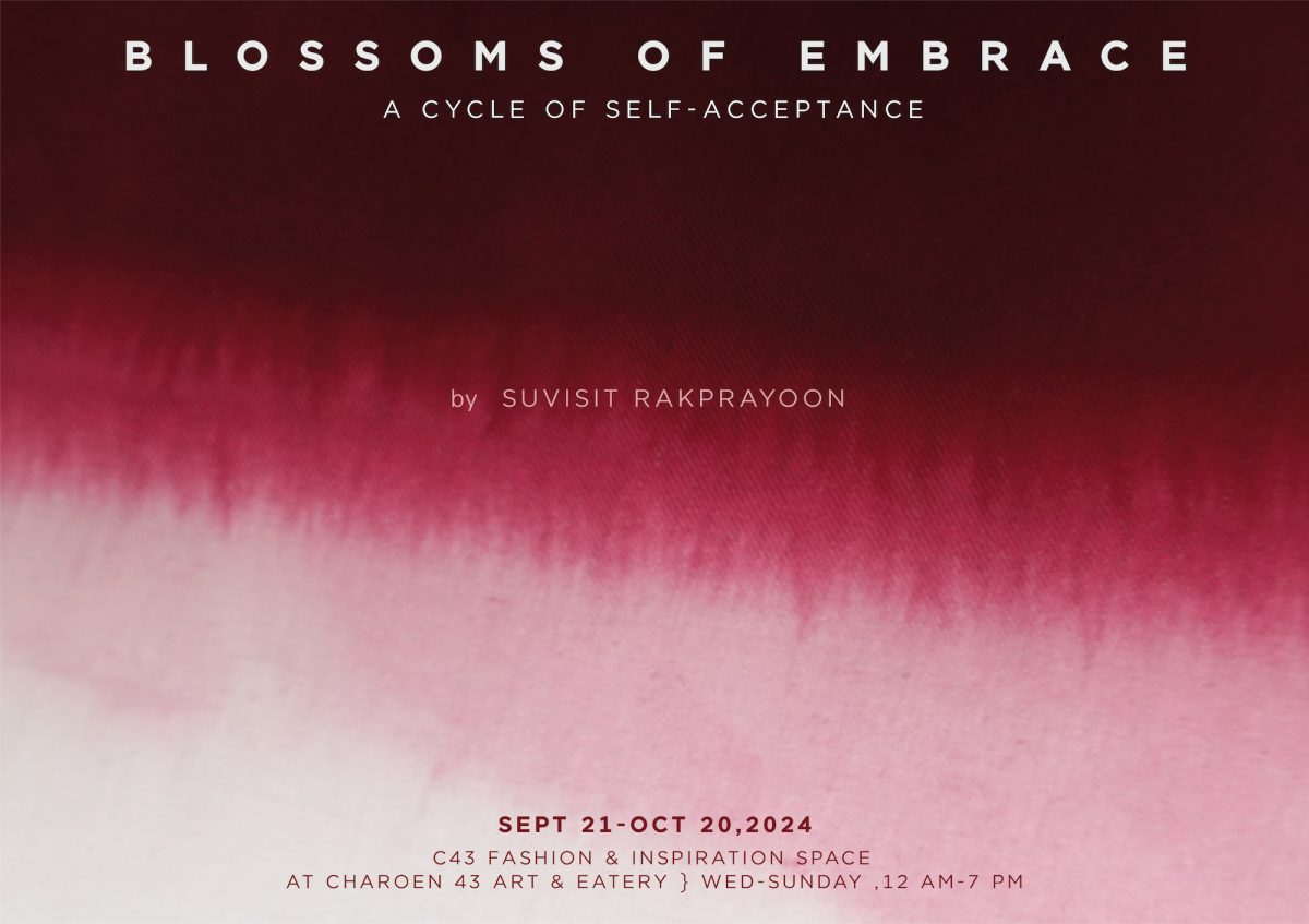 “ร่วมสัมผัสความเบาสบายและอิสระ ผ่านการมองเข้าไปข้างในด้วยความสงบ และยอมรับซึ่งกันและกัน” ในนิทรรศการ “Blossoms of Embrace: The Cycle of Self-Acceptance” จัดแสดงระหว่างวันที่ 21 กันยายน ถึง 20 ตุลาคม 2567 บนชั้น 2 ร้าน c43: Fashion and Inspiration Space ในโปรเจ็กต์ Charoen 43 Art and Eatery เข้าชมฟรี ทุกวันพุธถึงอาทิตย์ ตั้งแต่เวลา 12.00 – 19.00 น. ติดตามรายละเอียดและสอบถามเพิ่มเติมได้ที่ https://www.facebook.com/charoen43
