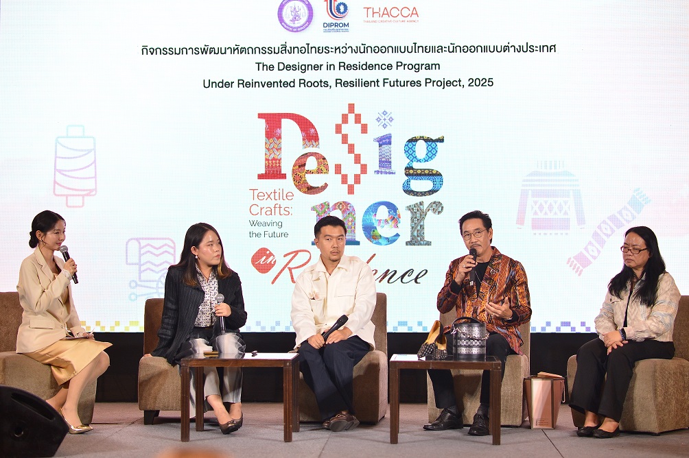 นางดวงดาว ขาวเจริญ รองอธิบดีกรมส่งเสริมอุตสาหกรรม เปิดเผยว่า กรมส่งเสริมอุตสาหกรรม หรือดีพร้อม เดินหน้าขับเคลื่อน Soft Power ของประเทศไทยผ่านกิจกรรมการพัฒนาหัตถกรรมสิ่งทอไทยระหว่างนักออกแบบไทยและนักออกแบบต่างประเทศ ตามนโยบาย ดีพร้อม คอมมูนิตี้ ที่นี่มีแต่ให้ โดยมีเป้าหมายหลักในการเสริมสร้างขีดความสามารถและเพิ่มทักษะนักออกแบบอุตสาหกรรมแฟชั่น เพื่อให้สามารถปรับตัวและแข่งขันได้อย่างมีประสิทธิภาพในระดับโลก โดยงานหัตถกรรมผ้าไทยมีมูลค่าการส่งออกในปี 2567 จำนวนกว่า 4,606 ล้านบาท ลดลงจากปี 2566 ร้อยละ 8.23 ในการจัดกิจกรรมครั้งนี้ เพื่อหวังกระตุ้นการพัฒนาและยกระดับสินค้ากลุ่มหัตถกรรมสิ่งทอ เช่น ผ้าผืนและเสื้อผ้าสำเร็จรูปที่ทอจากฝ้าย ไหม กัญชง หรือใยธรรมชาติอื่น ๆ ที่ทอมือ