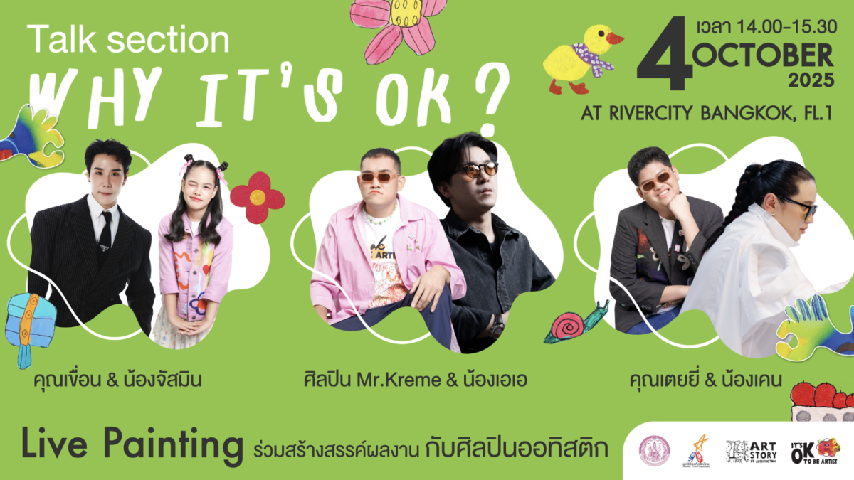 มูลนิธิออทิสติกไทย ร่วมกับ กระทรวงการพัฒนาสังคมและความมั่นคงของมนุษย์ และ Artstory By Autistic Thai ขอเชิญร่วมชมงานนิทรรศการ “It’s Ok to be Artist: เพราะทุกคนคือศิลปิน” นิทรรศการที่รวบรวมผลงานศิลปะจากศิลปินออทิสติกไทย ถ่ายทอดแรงบันดาลใจผ่านภาพวาด งานศิลป์ และกิจกรรมเชิงสร้างสรรค์ตลอด 15 วันเต็ม